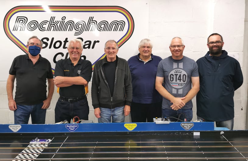 The ‘Raceway’ track is designed for BSCRA-type 1/32 and 1/24 and UKRRA Retro 1/24 racing. It’s a very fast 117-foot six-lane braided wooden track with a smooth gloss painted surface. Race control is through the latest version of the SlotMaster race management system. Controllers are connected through the usual BSCRA 3-pin 2 amp plugs, standard in UK slot racing clubs.